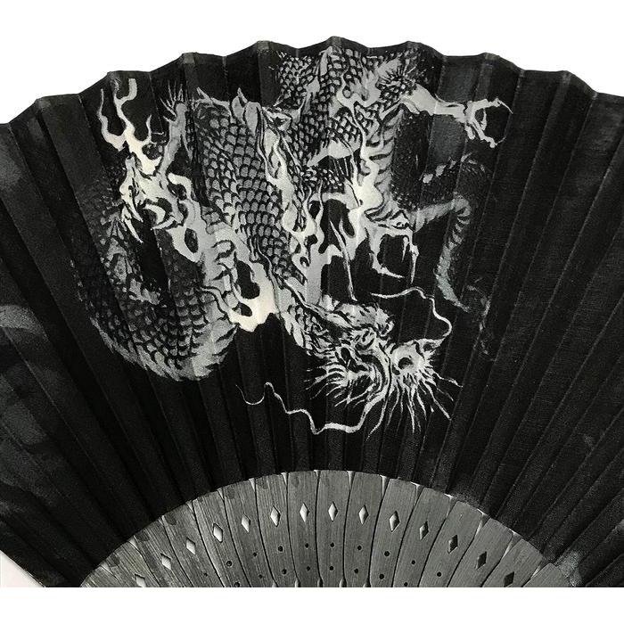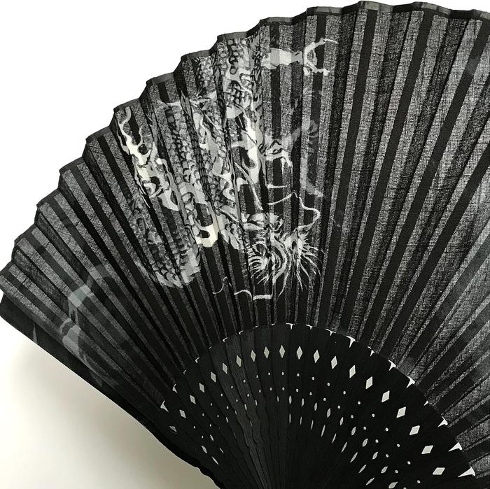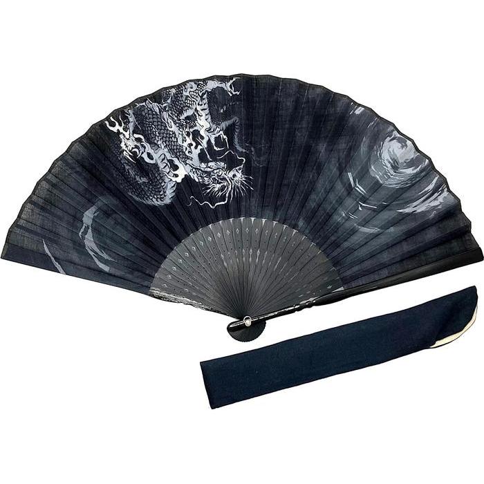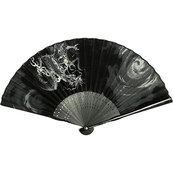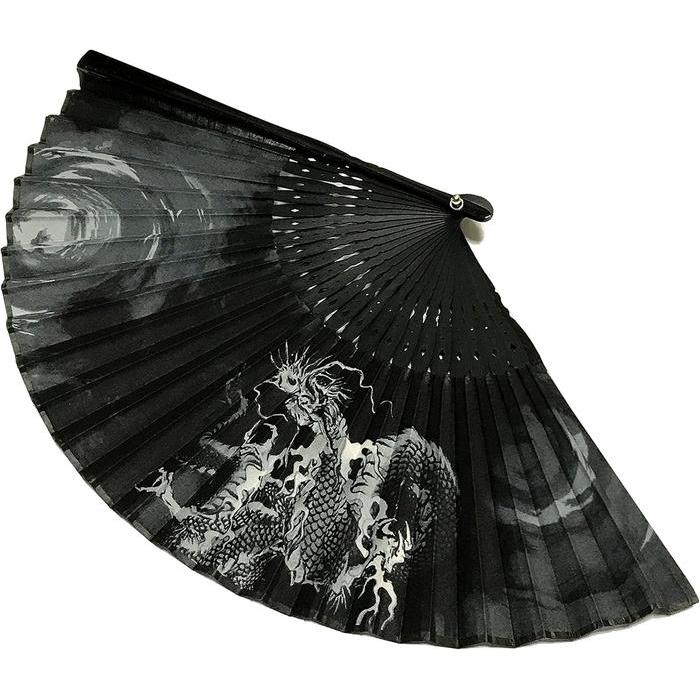 The black fan features a majestic cloud-and-dragon motif, embodying the spirit of the Ryujin (Dragon God) from Japanese mythology. -
