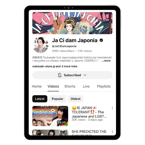 Join Emi Furukawa on her YouTube channel Ja Ci Dam Japonia! Discover authentic Japanese culture, honest product reviews, and behind-the-scenes stories. Subscribe today and stay connected with all things Wabi-Sabi!
