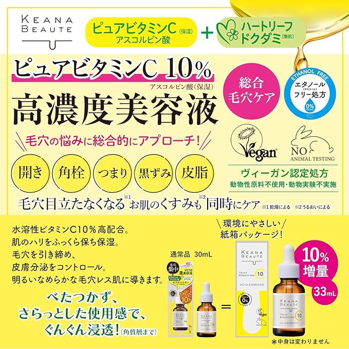 Keana Beaute VC10 – Serum z 10% witaminy C, wygładzające skórę i redukujące pory [Bez alkoholu]