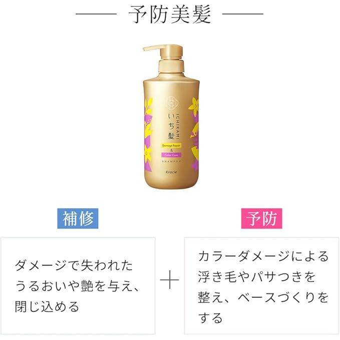 ICHIKAMI [Damage Repair & Color Care] Shampoo Pump – Amino Acid Formula for Color Protection 16.9 fl oz (480 ml) [With Alcohol]