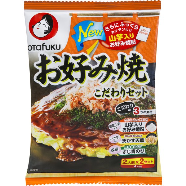 Contents: Otafuku Okonomiyaki Sauce (4 servings) 240g (Okonomiyaki flour 100g x 2, Tenkasu Tenka 20g x 2)